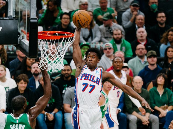 恩比德和乔治呢?首先,乔治虽然恢复了球队正常5V5训练,但没有达到出场标准。而恩比德季前赛就已经打了,和森林狼一战,恩比德出战19分钟,拿到14分7篮板8助攻,表现还行。可面对残阵凯尔特人,恩比德出战20分钟,全场9中1,包括三分球4中0,一共拿到4分6篮板2助攻,他在场时,76人净输16分;不在场的28分钟,76人净胜17分。出手基本是中远投,打到第四节追分阶段,主帅纳斯将恩比德换下场弃用。比赛中甚至出现恩比德被怀特迎射后,给对手鼓掌一幕。用费城媒体话说,弃用恩比德是正确决定,他不在赢球阵容中。
