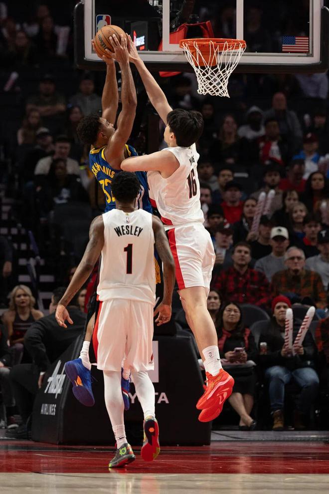 - 2025年10月25日 杨瀚森7分钟2分1板2帽 开拓者轻取勇士迎首胜 库里空砍35+6