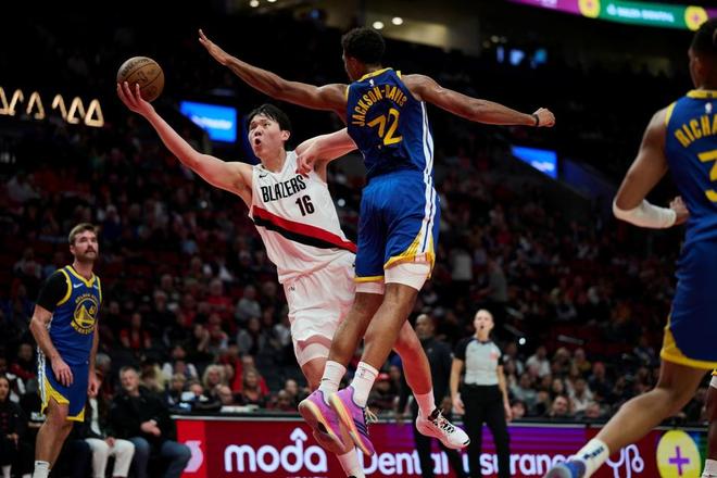- 2025年10月25日 杨瀚森7分钟2分1板2帽 开拓者轻取勇士迎首胜 库里空砍35+6