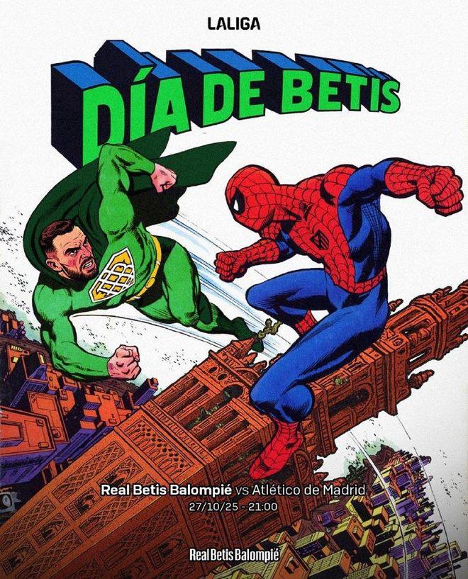 西甲官方发布两队赛前海报,其中蜘蛛侠大战绿灯侠。