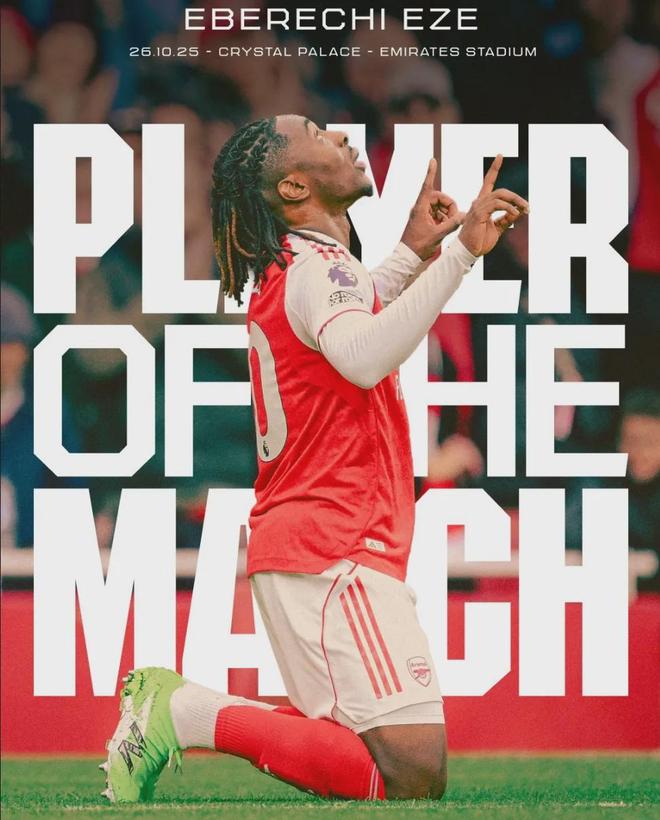 埃泽被阿森纳官方评选为了本场比赛最佳球员。
