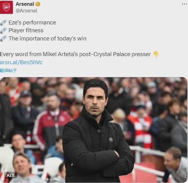 阿尔特塔出席了赛后新闻发布会,我们来看看阿森纳主帅的发言。